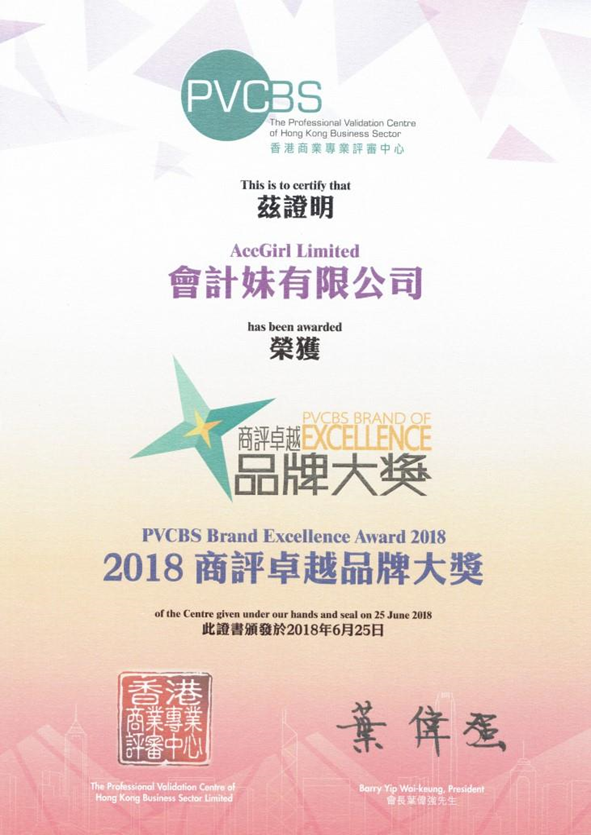 「香港商業專業評審中心2018商評卓越品牌大獎」- 會計妹®
