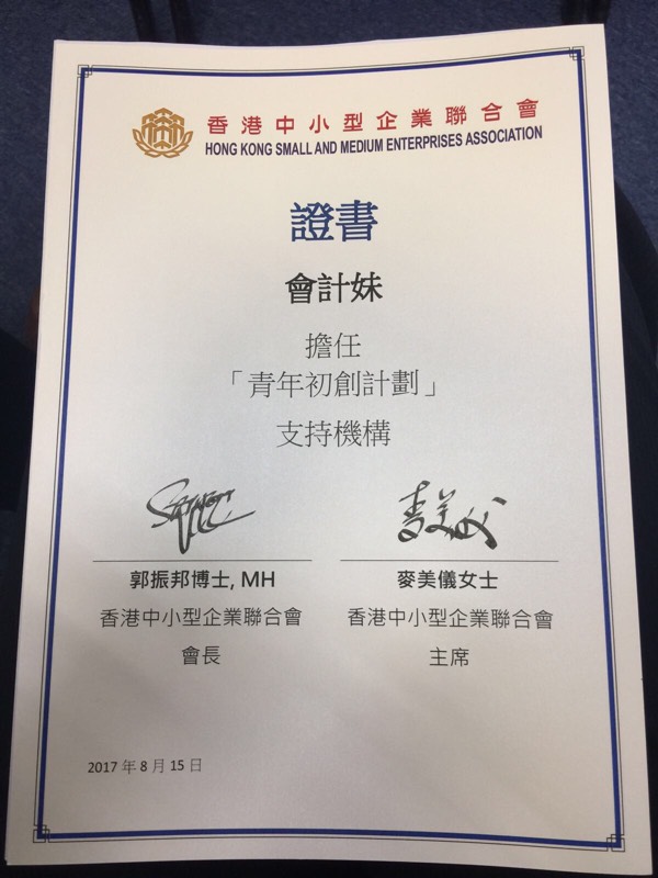 香港中小型企業聯合會為支持初創企業發展,並鼓勵更多年輕人創業,成立「青年初創計劃」。會計妹®擔任「青年初創計劃」之支持機構。