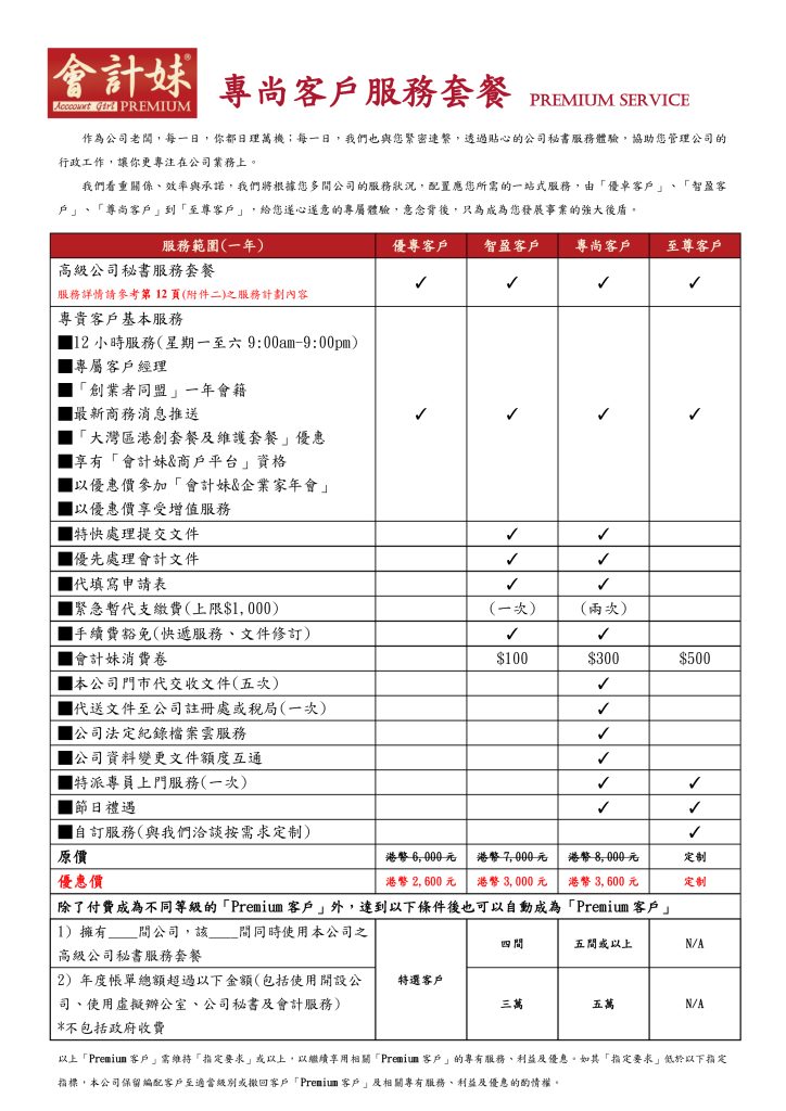 會計妹現正推出下列 「最低價優惠」,廉價收費萬無錯過: